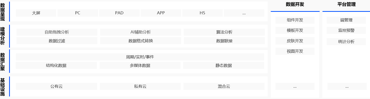 通过多源异构数据接入、整合/建模/探查、交互式开发,