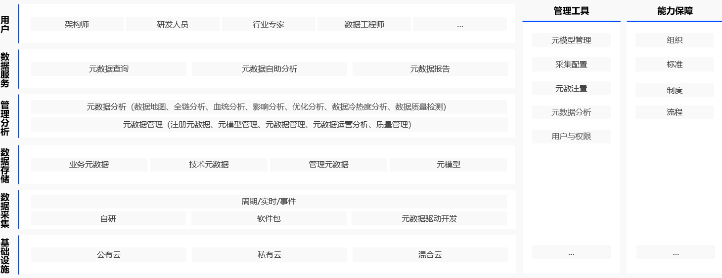 系统化地采集、管理、分析和应用数据生命周期的技术元数据、业务元数据、管理元数据,