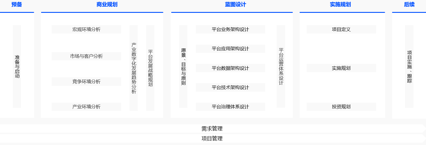设计产业平台的业务架构、数据架构、应用架构、技术架构及治理体系、运营体系,
